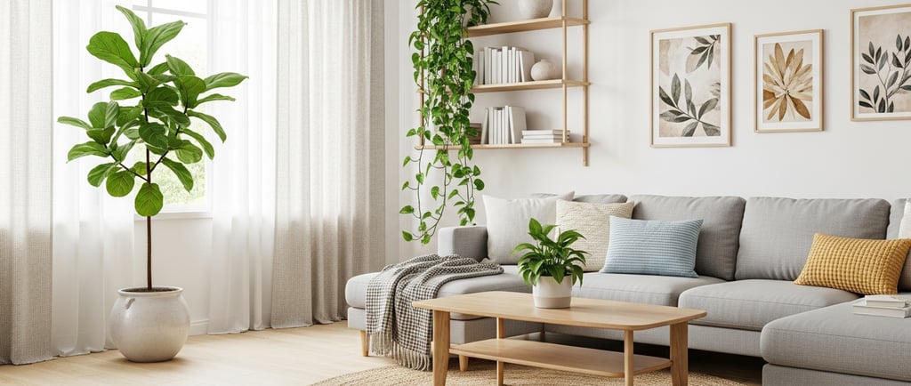 Coloca una Monstera deliciosa con sus hojas dramáticas, un elegante Ficus Lyrata o una Palma Kentia en una esquina vacía del salón o en la entrada. El resultado es un ancla visual que atrae todas las miradas y llena el espacio de una energía vibrante y consolidada.